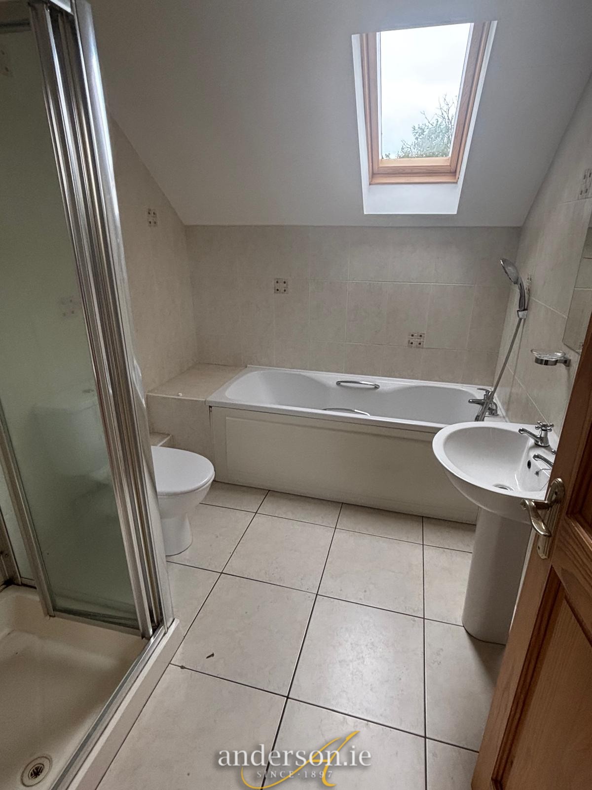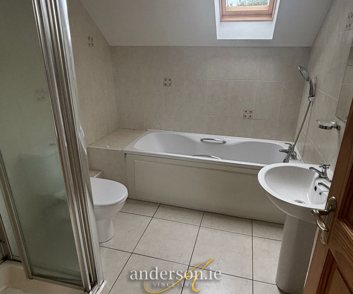 Bath, separate electric shower, toilet and wash basin