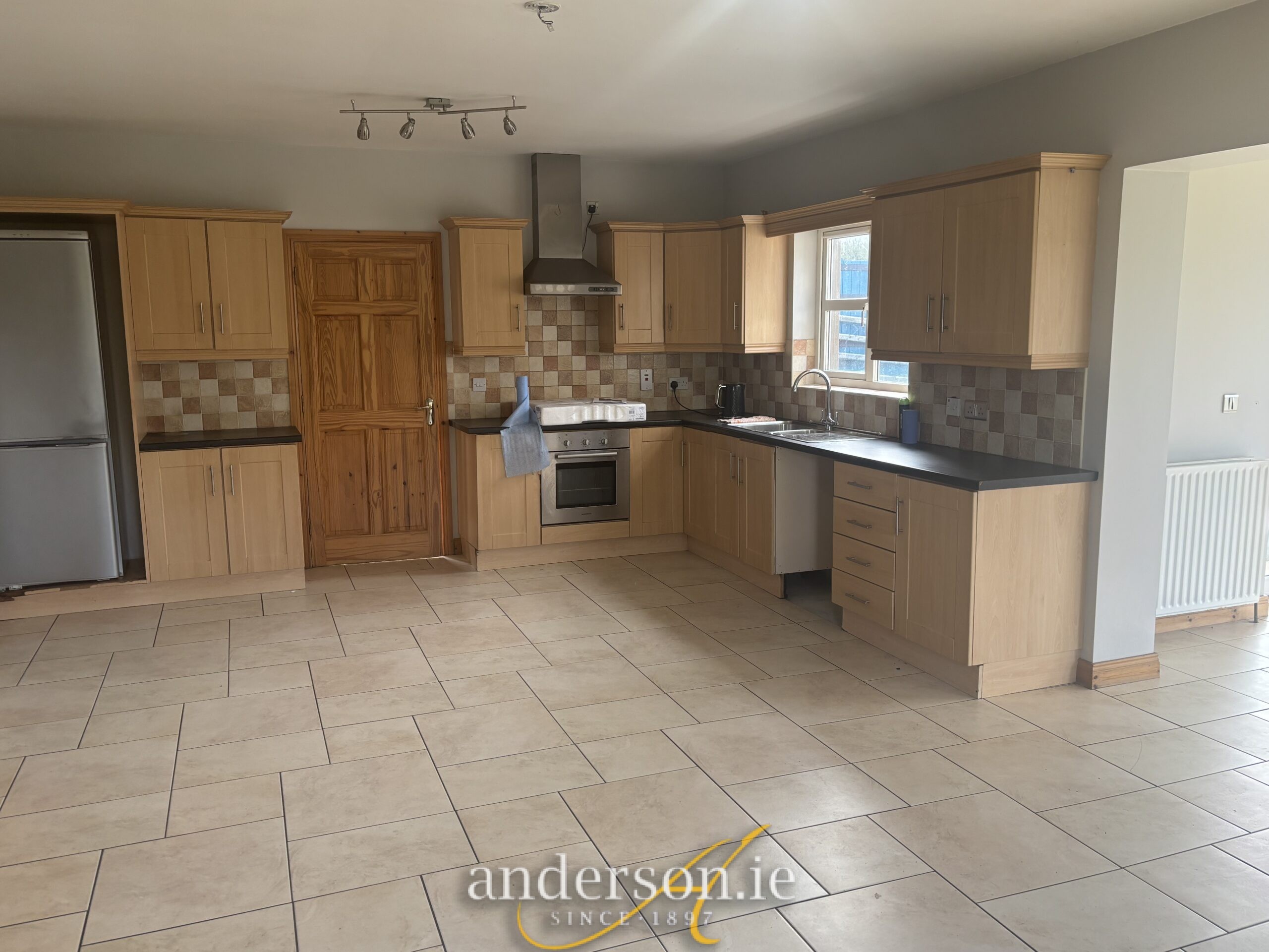 Tiled floor; fitted units with built-in oven and hob