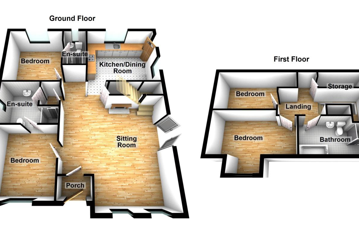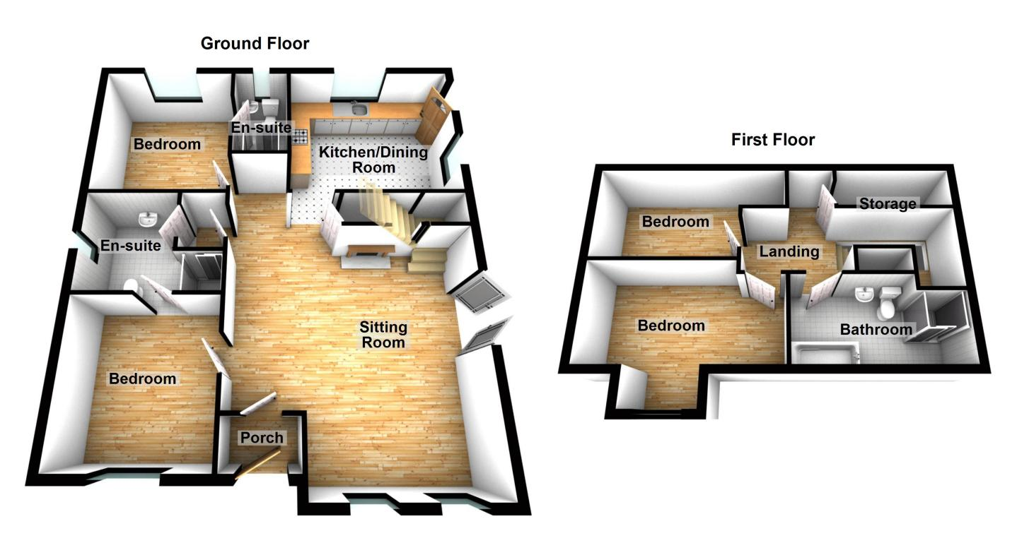 Ground Floor. Living Room,  Dining Area,  Kitchen,  2 No. Bedrooms (both en-suite)