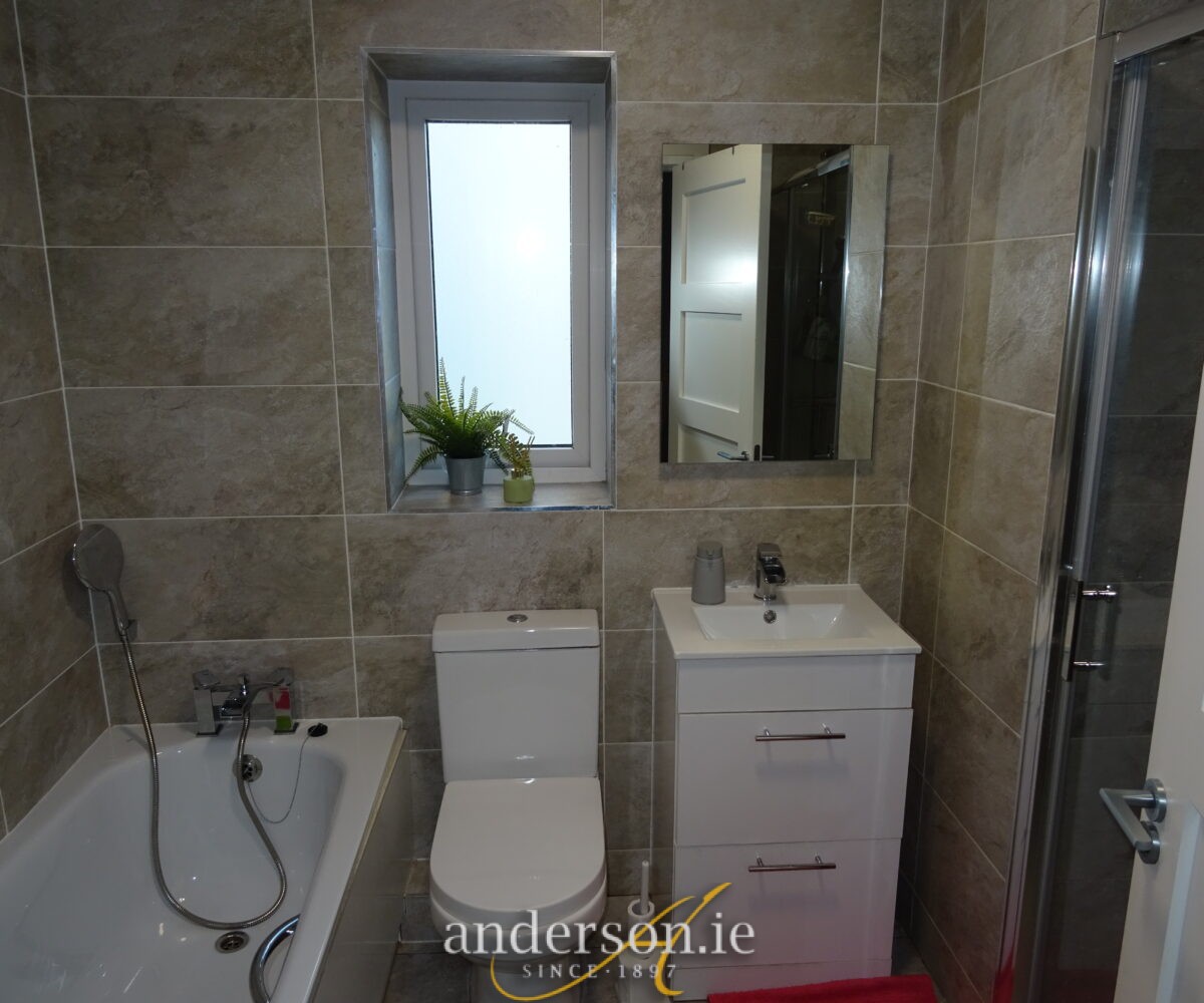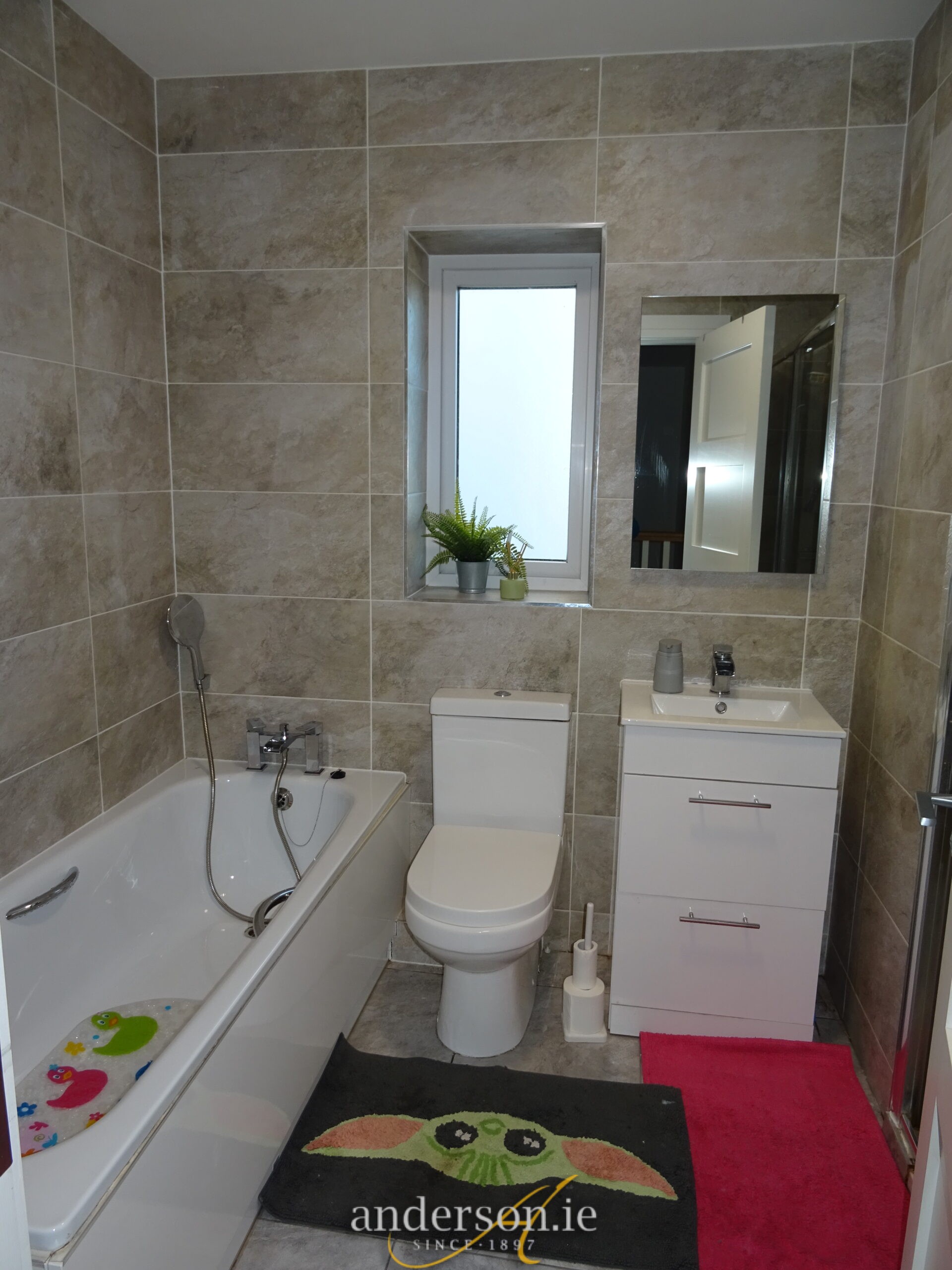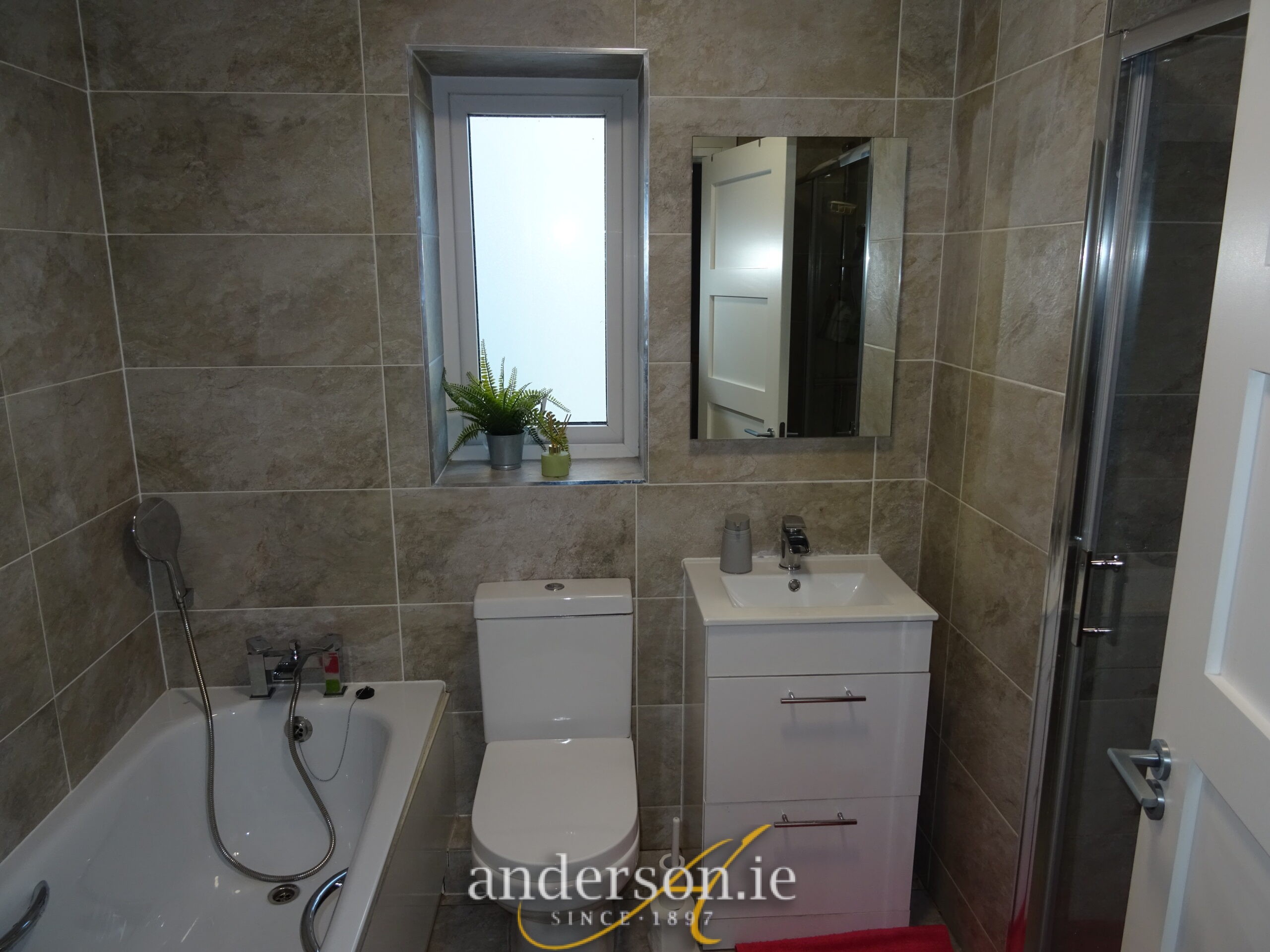 Bath, separate shower, toilet and wash basin;  fully tiled