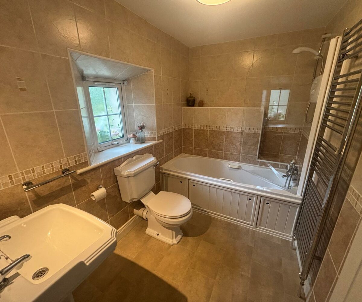 En-suite / Bathroom bath, toilet and wash basin; fully tiled