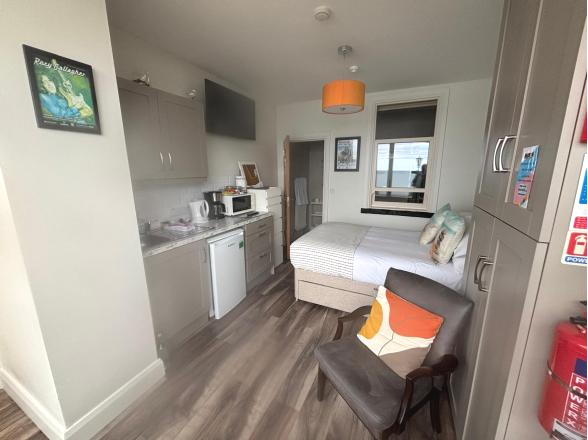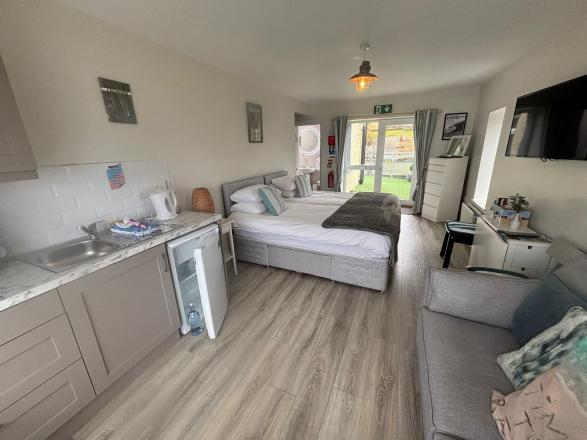Laminated flooring; fitted kitchenette units with sink;   stunning views of Sea