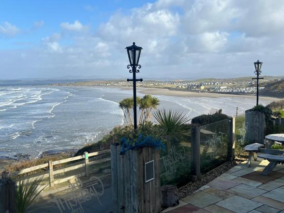 Fronting the property is a raised paved external  seating area with Chinese Stone paving slab;  wired for Jacuzzi –  truly magnificent uninterrupted views of Rossnowlagh Bay & Beach
