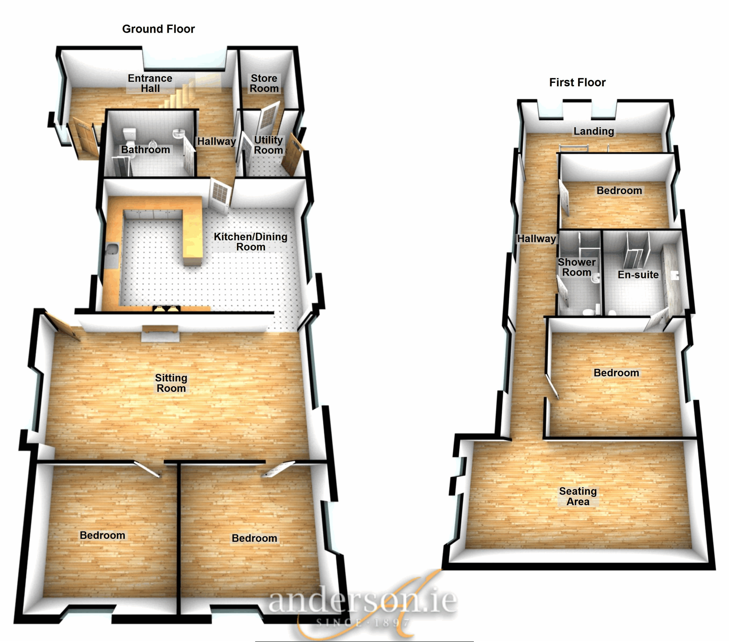 First Floor Large Landing with Office Area, 2 No. Bedrooms (1 en-suite) & Shower Room.