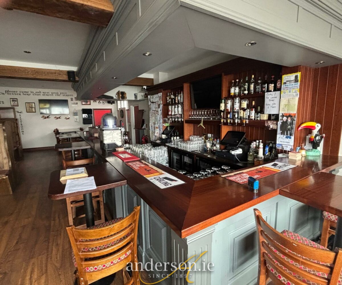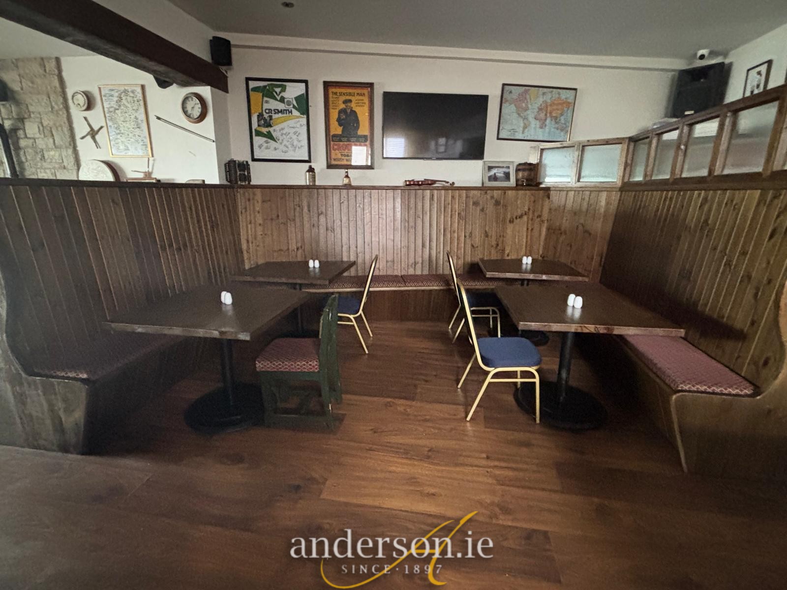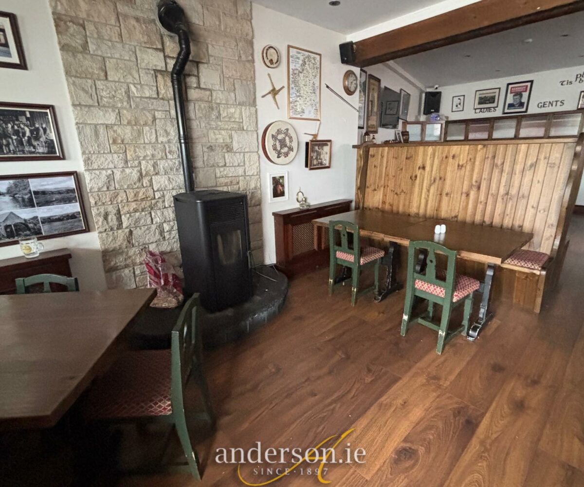 Refurbished in 2020; Seating for approx 50 persons, mahogany counter, beamed ceiling; Pellet Burner Stove with brick surround