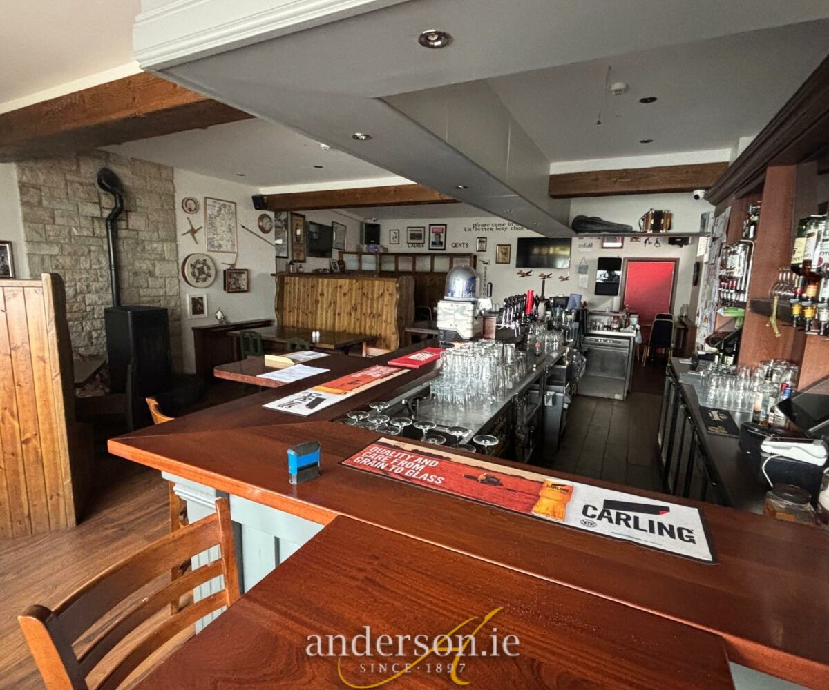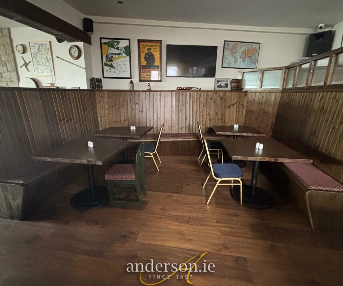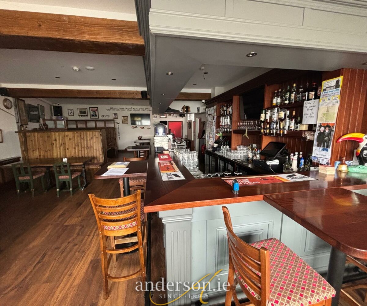Refurbished in 2020; Seating for approx 50 persons, mahogany counter, beamed ceiling; Pellet Burner Stove with brick surround