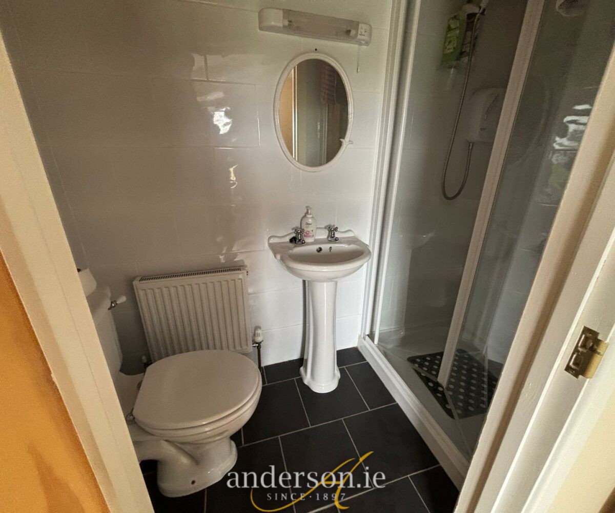 En-suite Electric shower, toilet and wash basin; fully tiled